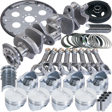 BALANCED 3.750" Cast Crank,5.700" I-BEAM Rods,3/8" ARP 8740 BOLTS,HYPEREUTECTIC KB -7CC FLAT TOP 4.040" PISTONS,PLASMA-MOLY FILE-FIT RINGS,KING SI Rod/MAIN BEARINGS, DAMPER, AND FLEXPLATE.