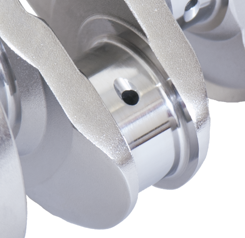 Eagle Billet 4340 steel crankshafts feature .125" fillet radiuses for superior strength so chamfered / narrowed bearings required, nitrided surface and micropolished.
