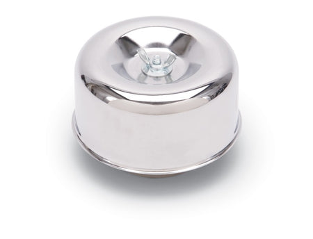 Edelbrock #1202 is a 4.65" round chrome plated steel air cleaner?for a single two barrel carburetor with a 2.63" OD air horn such as the Edelbrock 94, Holley 94, Stromberg 81 and 97, and Demon 98. Includes is a paper element and all mounting hardware. Air Cleaner lid is smooth. Overall height is approx. 3-1/8".