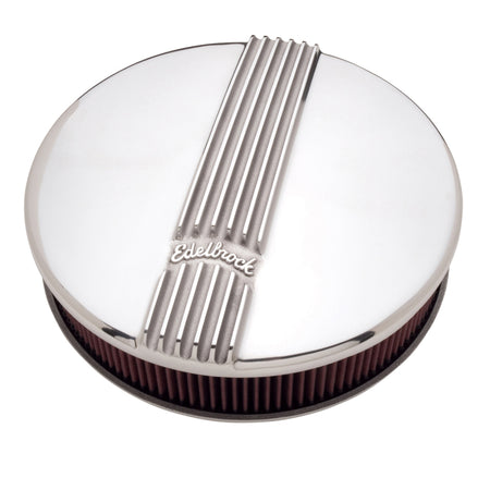 Edelbrock Air Cleaner Classic Series Round Aluminum Top Cloth Element 14In Dia X 3 9In Polished