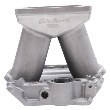 Edelbrock part #7085 Victor Carbureted Tunnel Ram base is designed for use with 468-582 c.i.d. standard-deck Chevrolet V8 engines with conventional rectangular port cylinder heads. This Tunnel Ram Base is a modern updated design to our very successful Victor Ram 2-R Tunnel Ram, which was first released over 35 years ago. It's designed for use with 468-582 c.i.d. standard-deck Chevrolet V8 engines with conventional rectangular port cylinder heads. This new and improved design has 7" long runners with close to 5.5 square-inches at the plenum, making it 25% larger than our current Victor Ram 2-R Tunnel Ram base! This is the ideal intake manifold for any modern high horsepower demanding application. Will fit Edelbrock Victor series race cylinder heads #77409, #77459 and #77609. Available for carbureted and fuel injected applications.