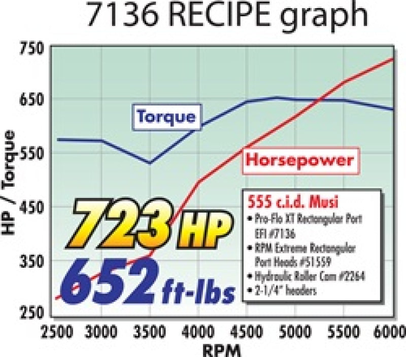 Edelbrock part #7136 Pro-Flo XT EFI intake manifold is engineered for high performance 396-502 c.i.d. Chevy V8's with rectangular-port cylinder heads. A large plenum and tapered runners deliver maximum horsepower and broad torque throughout the rpm range (1500-6500 rpm). It features a 90mm throttle body opening for maximum performance. Aesthetics were also a major consideration in the design, offering enthusiasts a custom look. The Air-Gap design features an open air space that separates the runners from the hot engine oil, resulting in a cooler, denser charge for more power. Pro-Flo XT EFI intakes accept Edelbrock Pro-Flo XT Throttle Bodies and Fuel Rails (sold separately).
