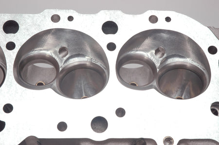 Edelbrock and Pat Musi Performance have combined efforts to produce the finest standard intake port location big-block Chevy head available. The Edelbrock #61419 Victor 24deg CNC Bare cylinder head features an extra thick deck and extra material in the spring pockets for a heavy-duty casting that can be used with high-lift cam and heavy spring combinations. Edelbrock equips the complete cylinder head with Manley dual-spring valve springs and titanium retainers good for up to .880" lift. The port designs are large oval (367 lh / 377 rh) that produce impressive flow - out-of-the-box. The exhaust port exits are raised .750" to greatly improve exhaust flow and power. Off the shelf large oval-port intakes are available through Edelbrock.