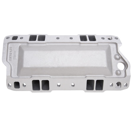 Edelbrock part #2971 Super Victor 4500 23 degree raised port intake manifold is designed for small-block Chevys with 4500 Series carburetors and 23 degree heads. This intake manifold has a large runner cross-sectional area (3.2 square inches) and a highly efficient cloverleaf plenum design.