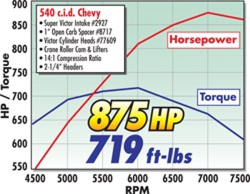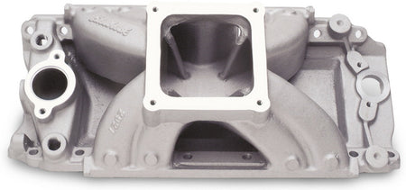 Edelbrock part #2927 Super Victor BBC intake manifold is designed for Chevy big-blocks with rectangular port cylinder heads. This single-plane manifold is ideal for 500+ cubic-inches or any big-block drag race engine with high air flow requirements. In dyno testing, Super Victor #2927 outperformed the competition out-of-the-box with just a port match and minor blending of critical surfaces.