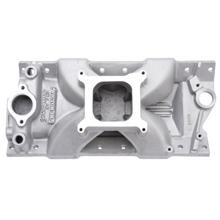 Edelbrock part #2999 Victor Jr. 23 degree Tall intake manifold provides maximum performance for engines with standard port location, iron and aluminum cylinder heads. This versatile manifold is excellent for many applications from high-performance's street to drag/circle track racing. This Victor Jr. 23 degree tall intake manifold features a 1" taller carb pad than the Victor Jr. #2975.