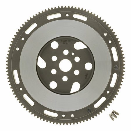 Exedy flywheels combine low weight, low inertia and high thermal capacity. They are designed for lightly tuned racing cars and drag racing, autocross and rally events, as well as street usage. They are made from solid one-piece billet chromoly steel or chromoly steel forgings. They are specifically designed to reduce weight and inertia for better engine response. Most incorporate special design features to enhance airflow and cooling of the clutch. The ring gear teeth are integrated onto the flywheel unlike an aluminum flywheel where the ring gear is pressed onto the flywheel and has the possibility of separating due to different expansion coefficients of aluminum vs. steel. Exedy steel billet and forged steel flywheels have passed engineering tests to 15,000-18,000 rpm and guaranteed not to fail to the said rpm and are all SFI approved.