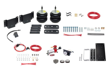 Firestone's original helper spring kit is designed to level loads when you are hauling or towing to eliminate squat and return the vehicle designed ride height. Paired with a single path analog compressor kit and no drill mounting plate. A true All In One kit with everything you need in one box for a quick and easy install.