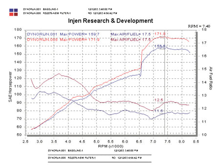 Add some easy horsepower to your Ride with this RD Series Performance cold air intake (CAI) from Injen Technology! The engineers at Injen have spent considerable amounts of time designing, testing, and perfecting this CAI to produce some serious bolt-on power while also providing amazing engine bay aesthetics. In addition to the impressive power increase, the Injen team has ensured that safe Air fuel (A/F) ratios are maintained throughout the powerband. , , The soul of this intake is found within our mandrel-bent 6061-T6 aluminum air intake tube that provides a smooth uninterrupted path for highly efficient airflow. This tube reaches into the depths of the engine bay to collect the coolest and densest air available. Additionally, this RD intake also includes a fully serviceable Injen SuperNano-Web dry air filter, which provides increased filter surface area allowing for greater airflow and unbeatable filtration. If that's not enough, the Injen RD performance intake provides power you can hear and feel! This intake provides an aggressive and throaty tone that is unmatched in the aftermarket. Want to add that personalized touch to your intake? Injen also offers this intake system in a polished or a powder-coated Black finish. To top it all off, this RD CAI kit includes the unbeatable Injen Technology limited Lifetime Warranty!,