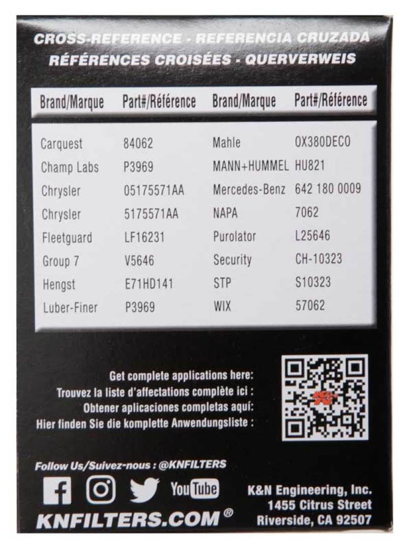 K&N Cartridge Oil Filters are designed to satisfy the needs of racers and engine builders as well as the average vehicle owner who wants the best oil filter available. K&N cartridge oil filters trap harmful contaminants while the filter's construction allows for high oil flow rates. All K&N oil filters are manufactured to meet stringent engineering standards. They are covered by a limited warranty to be free from defects in materials and workmanship when installed and replaced using engine and equipment manufacturer's recommended service intervals.
