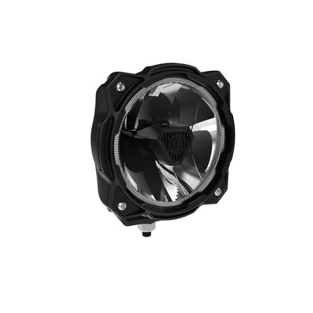 The KC Gravity(r) Titan(tm) 6" Lights in Wide-40 Beam revolutionize off-road lighting, and find themselves at home on the front bumpers and A-Pillars of off-road rigs. At their heart lies the innovative Titan Core, powering 3-Source LED optics. This results in a 1.5x larger Illumination Zone than the Gravity Pro6 lights while also being 2.5x brighter. At the flip of the switch, alter between High Power Mode for intense output and an integrated Amber Dust Light for others to easily see you in dusty conditions. The Titan features a patented Pass-Through Front Cooling, a cutting-edge design that dissipates heat, ensuring optimal performance and longevity in high-heat, high-demand environments. Experience unparalleled lighting power with the Gravity(r) Titan(tm), designed to excel in the most challenging off-road adventures.