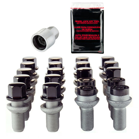 The convenient way to order lug bolts and wheel locks. Contains all the fasteners that you need to install 4 wheels and tires. McGard Lug Bolts are designed & manufactured in the USA. Wheel Lock bolts are designed in USA and manufactured in EU and USA. Presently, McGard is an Original Equipment wheel lock supplier to most automobile brands around the world. McGard lug bolts enhance the look of any wheel! 2-piece design utilizes a free-spinning seat for optimum safety and performance. This design, in conjunction with a proprietary thread coating, protects against galling, helps prevent seized or difficult to remove lug bolts and enhances torque and tension. The chrome with black PVD plating is guaranteed for life not to chip, peel or rust. These easy-to-use, one-piece wheel locks function like regular lug bolts, but require a special key tool for installation and removal. The computer generated key designs allow for an infinite number of key patterns. Every McGard wheel lock is fully machined from restricted chemistry steel made specifically for McGard and through-hardened for its unsurpassed level of security and safety. Replaces Mercedes-Benz M14x1.5 radius seat lug bolt part numbers 000-990-4907 and 000-990-5107 (fluted hex). This product contains globally sourced materials/components.