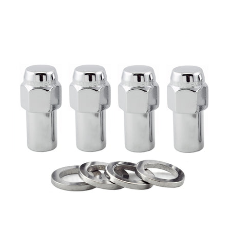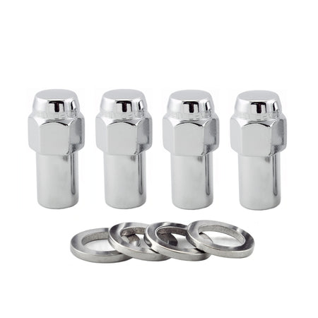 Chrome plated lug nuts lead a tough life.; Think about it, harsh elements, nasty corrosive wheel cleaners and lead-foot drivers.; Not to mention overzealous impact guns and loose fitting lug wrenches.; This kind of treatment destroys ordinary lug nuts which turns even the best looking wheels ugly.; Tough Nuts can take the punishment and keep your wheels looking beautiful.; Tough Nuts are guaranteed for life not to rust, chip or peel.; McGard manufactures lug nuts in the USA to meet or exceed O.E.M.; standards for safety and durability.; Every lug nut is fully machined from restricted chemistry steel made specifically for McGard and through-hardened for its unsurpassed level of safety.; McGard's plating process includes several layers of nickel and one layer of microporous chrome producing a superior finish while protecting against rust.; Tough Nuts are designed and built for the real world, because life is tough.; Long .946 Shank length for use with custom replacement aluminum wheels that are at least 7/8 but less than 1-1/4 thick at the stud hole and have a flat seat.; Contains polished stainless steel washers.; This product may contain globally sourced materials/components.