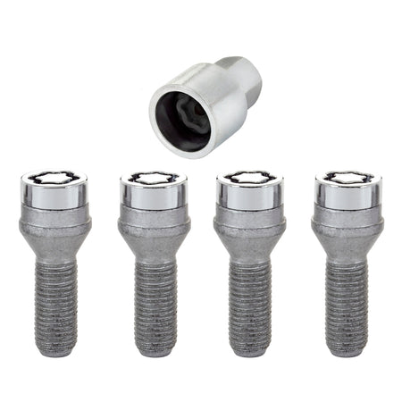 Protecting the world's finest wheels and tires from theft since 1964.; Wheel Lock bolts are designed in USA and manufactured in EU and USA. Presently, McGard is an Original Equipment wheel lock supplier to most automobile brands around the world.; These easy-to-use wheel locks function like regular lug bolts, but require a special key tool for installation and removal.; The steel collar on the user friendly key guides the key into the lock pattern.; The collar holds the key in alignment for easy installation and removal.; The computer generated key designs allow for an infinite number of key patterns.; The extra narrow pattern groove on the lock resists the intrusion of removal tools into the pattern.; Every McGard wheel lock utilizes fully machined, restricted chemistry steel made specifically for McGard and through-hardened for its unsurpassed level of security.; McGard's plating process includes several layers of nickel and one layer of microporous chrome producing a superior finish while protecting against rust.; The bolt stem has a dacromet coating to meet O.E.M.; standards.; For use with steel or aluminum wheels with a tapered seat. This product contains globally sourced materials/components.