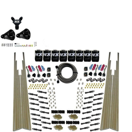 This four stage NX Dry Direct Port System provides nitrous directly into each cylinder through four sets of high flow NX Dry Nozzles. This system is designed to be used with an engine management system that can add nitrous enrichment through the engines fuel system. A jet card with lbs./hr. flow data for each horsepower setting is provided to aid in tuning your engine management systems nitrous enrichment settings. Includes eight billet aluminum and carbon fiber Lightning Nitrous Solenoids, thirty two NX Dry Nozzles, 6an nitrous feedline, jets for 100-600hp per stage, WOT switch, relay, relay harness and all necessary hardware to complete the installation.