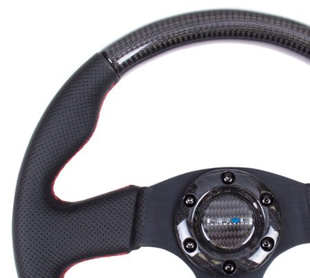 NRG Carbon Fiber Steering Wheel (315mm) Leather Trim w/Red Stitching