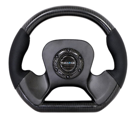 NRG Carbon Fiber Steering Wheel (320mm) CF Center Plate & Two-Tone Carbon w/Leather Trim Handles