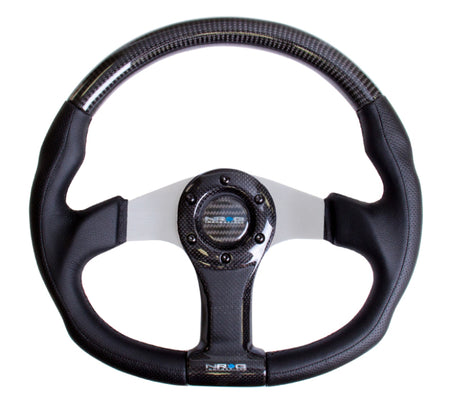 NRG Carbon Fiber Steering Wheel (350mm) Silver Oval Shape w/Leather Trim