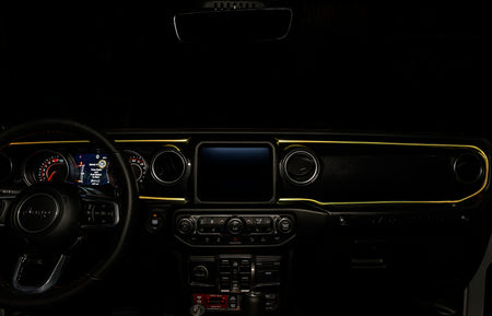 ORACLE Lighting's new Fiber Optic Interior Kits are the perfect way to accent your vehicle's dull interior in a clean and seamless way. The special side-firing fiber optic cables have an integrated edge to make installation easy on any vehicle. Using the included installation tool, insert the integrated edge between interior body panels in your vehicle including door panels, dashboard, headliner, console, and more. The power cord adapter has a switch to turn ON and OFF the lights conveniently. This is a universal product and while this is simple in most cases it is important to understand each vehicle is different and may need some installation experience to pull off the perfect install, so we recommend professional installation. How It Works: The fiber optic is end lit by a LED light head. We recommend for any length over 3' you end-light both ends of the cable for the best and brightest look. The light travels through the fiber and lights up smoothly along the way for a very clean and understated appearance. The integrated edge is designed to hold the fiber optic cable tightly without the use of any adhesive. Our ColorSHIFT(tm) option comes with a remote that allows you to select the exact color you want to use, adjust the brightness, and even do different effects like pulse, strobe, and smooth color transitions. You can also control your fiber optic interior kit using the free app called "LED LAMP." Available for Android and IOS.