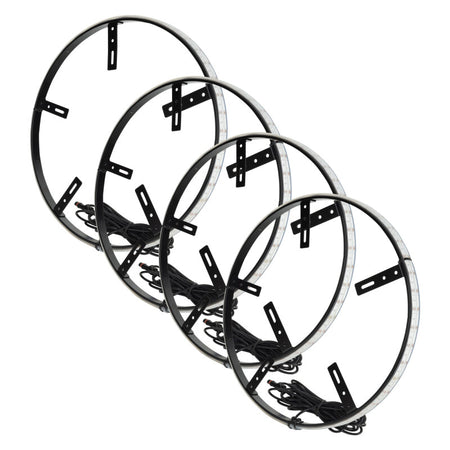 ORACLE’s PLASMA™ LED Wheel Rings are the latest advancement in our expansive lighting modifications. The PLASMA LEDs feature a unique seamless ring of LEDs which means NO DOTS like you see with other LED Wheel Rings on the market. This is a PATNET-PENDNG feature only offered by ORACLE Lighting. This unique laser-like band of LED is super bright and is sure to get your car or truck noticed! ORACLE Lighting illuminated LED wheel rings are an easy and effective way to light up the wheels on your car or truck! This head-turning lighting product consists of a set of (4) LED illuminated aluminum rings which install around the brake rotor and attaches to the brake dust shield. These can also be mounted to older vehicles with drum brakes. The effect is a large ring of light that accents custom wheels and stands out at events. The oversized 16.5” diameter is the largest on the market and fits oversized brakes. Installation is easy with waterproof Plug & Play Connectors that easily connect the individual rings to the central control box. Battery connection leads include ring terminals and in-line fuse for simplified wiring installation. Upgrades to our LED wheel lights include thicker aluminum rings, waterproof connectors, and pre-installed brackets. If your vehicle does not have a brake dust shield, you will need to modify the brackets – watch this video for a step-by-step installation guide. Additionally, for vehicles with drum brakes, you may need to create a larger bracket or buy XL brackets, reach out to our customer service for more answers to any of your questions.