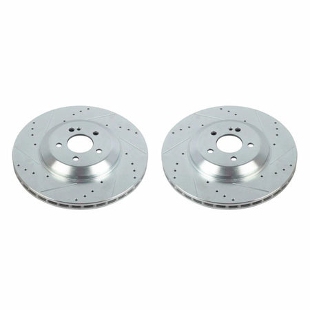 Power Stop drilled and slotted rotors provide a bolt-on upgrade for improved brake cooling and performance. Precision cross-drilled for maximum cooling and maximum performance during extreme conditions; rounded slots sweep away gasses, dust, and moisture to keep a clean friction contact patch on the rotor surface. Silver zinc dichromate plating resists rust and corrosion. With a direct OE fit, there are no special modifications needed.
