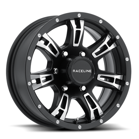 Raceline 840 Arsenal 15x5in / 5x114.3 BP / 0mm Offset / 3.19mm Bore - Black & Machined Wheel
