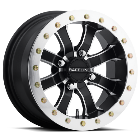Raceline A71 Mamba 14x7in/4x156 BP/4+3 10mm Offset/132.5mm Bore - Blk & Machined Ring Beadlock Wheel
