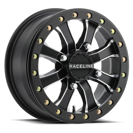 Raceline A71MB Mamba 15x6in / 4x156 BP / 40mm Offset / 132.5mm Bore- Black & Machined Beadlock Wheel
