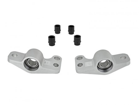 Skunk2 Racing is proud to announce the release of its Spherical Bearing Compliance Bracket for the front lower control arms on the '96-'00 Civic. Skunk2 Racing's Billet Compliance Bracket w/ Spherical Bearings are direct replacements for your soft and worn OEM units that compromise geometry for comfort. Our Billet Brackets and Spherical Bearings eliminate deflection and increases the lower control arms freedom of motion on multiple axes simultaneously. Spherical Bearing Billet Compliance Brackets offer the hardcore racer and discerning enthusiast, the very best of the best. Accurate suspension geometry is maintained under the most aggressive driving conditions using high load steel spherical bearings that are retained in the billet housing with removable Spirolox, giving you the ability to service or replace when needed. Skunk2 Racing Billet Compliance Brackets w/ Spherical Bearings are recommended for no-nonsense track cars or extreme performance streetcars. For maximum suspension performance, Skunk2 Billet Compliance Brackets w/ Spherical Bearings are best complemented with Skunk2 Spherical Bearing Front Lower Control Arms, Pro Series Camber Kits, Coilovers, and Strut Tower Bars.