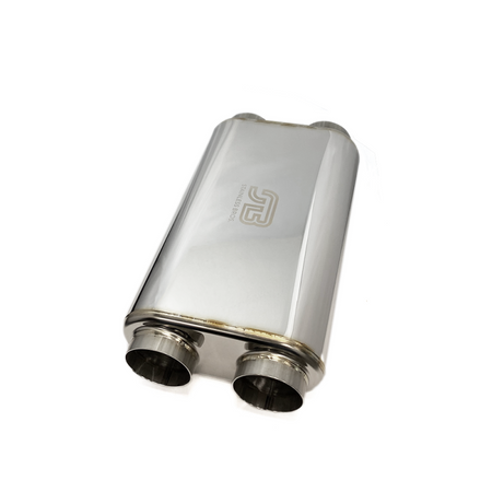 Stainless Bros 3in x 17in OAL SS304 Thin Oval Muffler (3in Dual In / 3in Dual Out) - Polished