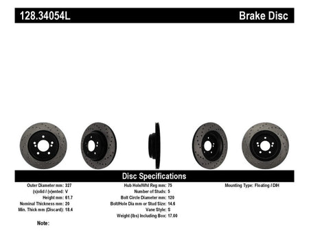 StopTech 01-07 BMW M3 (E46) / 00-04 M5 (E39) Drilled Left Rear Rotor