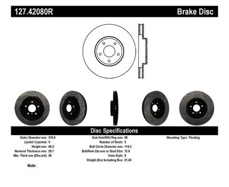 StopTech 06-07 350Z / 05-07 G35 exp Sport/ 06-07 G35X SportStop Slotted & Drilled Front Right Rotor