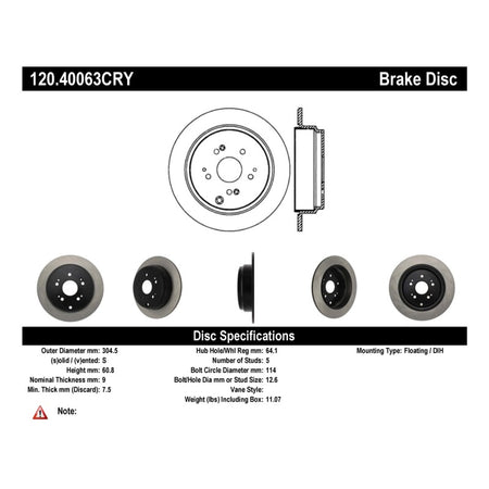 Stoptech 07-18 Acura RDX Rear Premium CryoStop Brake Rotor