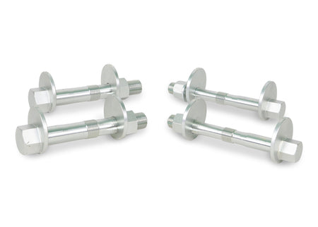 These camber bolts overcome the problems associated with the O.E lower inner camber bolts. The trouble starts when the front lower camber bolts rust into the tubes of the standard camber bolt set up and the tube of the rear bushing. A one piece front bolt and rear bolt designed to not corrode makes future wheel alignments trouble free.