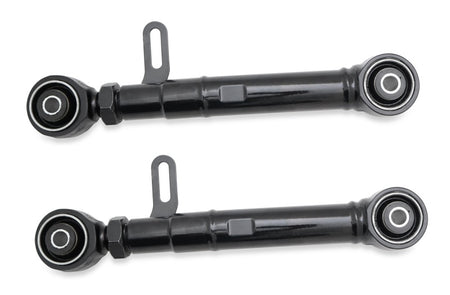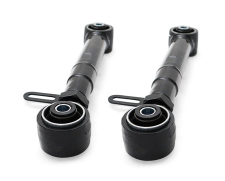 SuperPro's HD Upper Trailing Arm Set includes a wide range of adjustment to dial in wheelbase and pinion angle as well as our high-articulation lifetime bushings. This setup pairs off road durability with on road refinement with the ability to dial in your rig's suspension and geometry for unmatched ride quality and capability. Off-car adjustable for pinion angle correction: min 302mm to max 337mm