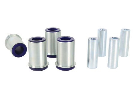 Control arm bushings form the vital pivot and link between all core suspension components. SuperPro's 'offset' bushing options allow you to fine tune camber adjustments at the front upper control arm without the significant cost of complete adjustable arms. Offering 0.5 to 1.0 of adjustment this kit allows you to fine tune your alignment to OEM or desired specifications or to compensate for a small suspension lift. Worn bushings allow significant deflection and movement leading to slower Reponses, a sloppy drive, irregular and excessive tire wear and diminish every facet of the way your vehicle drives. The wear is accelerated and the impact of worn bushings is even greater in upgraded trucks and SUVs where the higher weight and impact of items like larger wheels and tires all work the bushings harder. SuperPro's polyurethane bushings are the culmination of nearly 5 decades of suspension expertise and development in Australia's harshest terrain. Designed with durability as a paramount feature we also bring ride and passenger comfort to the forefront of our development. Your vehicle should treat you as well on the way to and from the trail as it performs on your adventure. Our designs and material compositions retain OEM levels of noise and harshness isolation while delivering superior performance and road manners in all conditions.