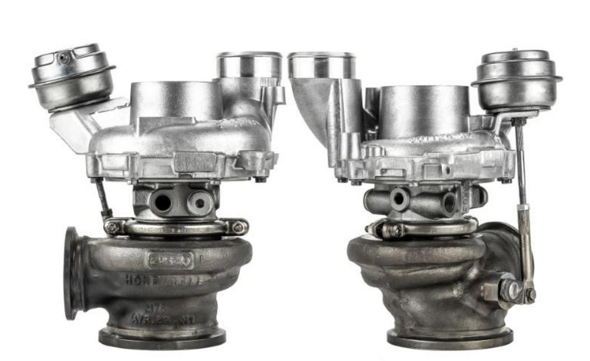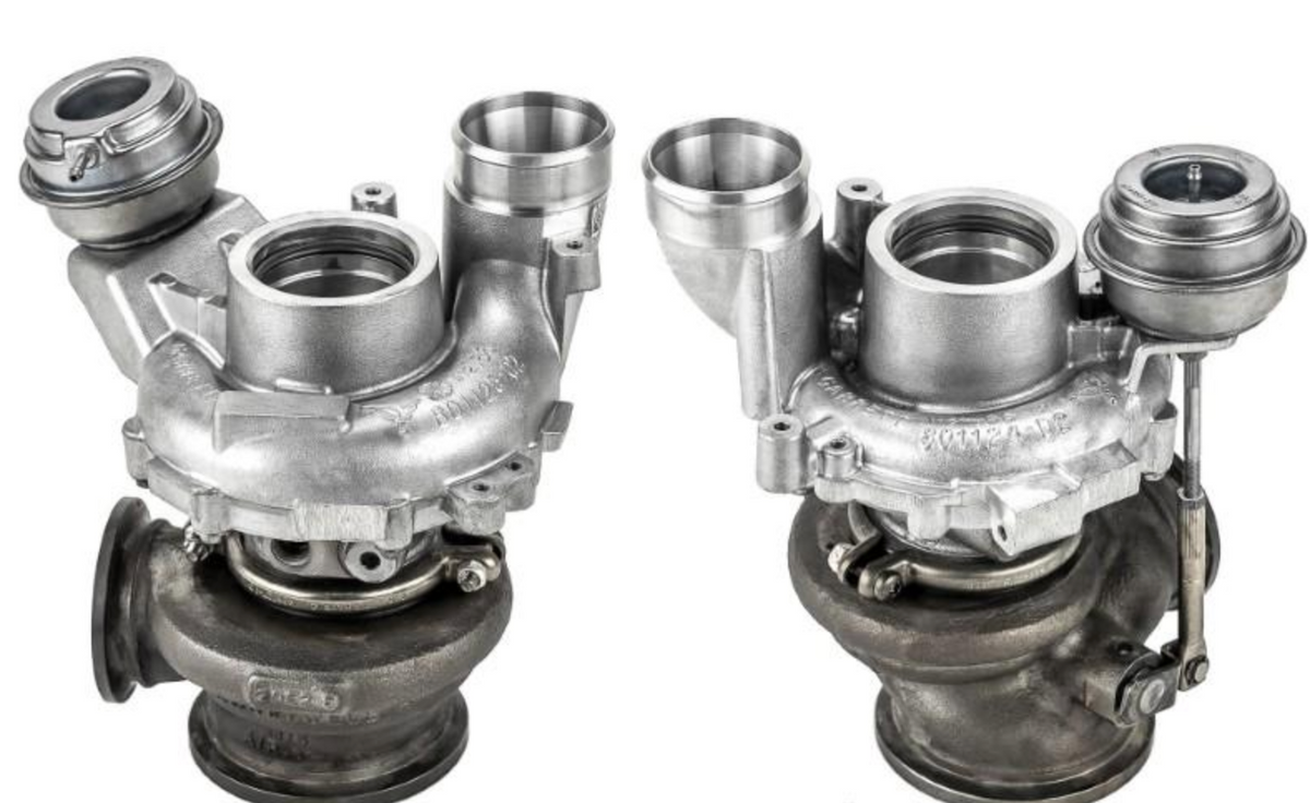 The factory turbocharges are disassembled and fully inspected. The compressor cover and center cartridge are then machined to accept Weistec's 5-axis CNC machined impeller wheel. Externally, no changes are made to maintain a completely stock appearance. The new impeller wheel supports greater power levels than the factory unit with little to no sacrifice in spool and response. The turbochargers are then reassembled with new seals and fully balanced for smooth operation and OEM service life. All the original oil and coolant lines bolt right up making for a simple install.
