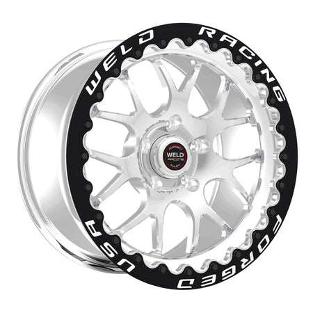 Weld S77 17x11 / 5x4.75 BP / 7.7in. BS Polished Wheel (High Pad) - Black Single Beadlock