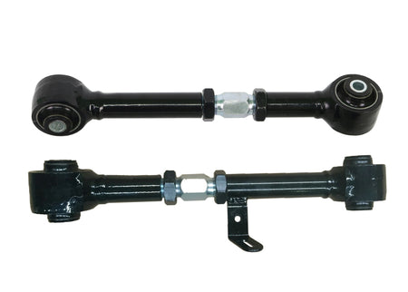 Heavy duty turnbuckle adjustable trailing arms provides incremental on car adjustability of differential pinion angle. This allows you to dial in more or less traction under heavy acceleration. Best matched with Whiteline's heavy duty lower trailing arms for optimum performance.