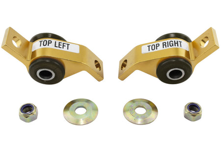 Whiteline Anti Lift Kits are primarily designed to improve traction and cornering grip under power. By increasing static caster and improving front end geometry the new alloy mounts coupled with low compliance synthetic elastomer bushings serve to dramatically sharpen initial turn-in response and reduce understeer.