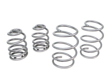Whiteline Springs deliver improved vehicle performance whilst maintaining safety and ride quality characteristics. This kit contains 3.0kg/mm (168lb/in) front rated springs that provide a 40mm drop while the 6.8kg/mm (371lb/in) rated rears deliver a desirable 30mm to the vehicle. By lowering the vehicles centre of gravity, the unique and progressive rate coil design not only improve performance but enhance overall appearance. Developed and manufactured in Europe from the highest quality materials, coating and to the finest tolerances guaranteeing exact fitment. Whiteline Springs are engineered for optimal balance with OEM and aftermarket shocks. For total grip activation match with Whiteline Sway Bar and Essentials kit for unrivalled handling and optimal vehicle performance.