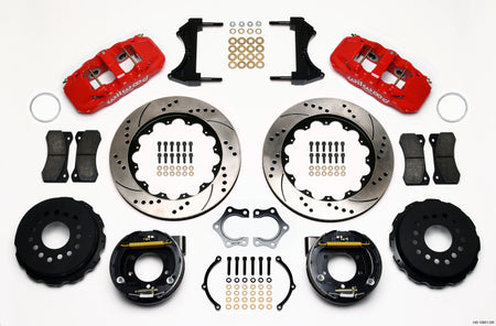 Wilwood AERO4 Rear P-Brake Kit 14.00in Drill Red Mopar/Dana 2.36in Off w/Snap Ring Bearing