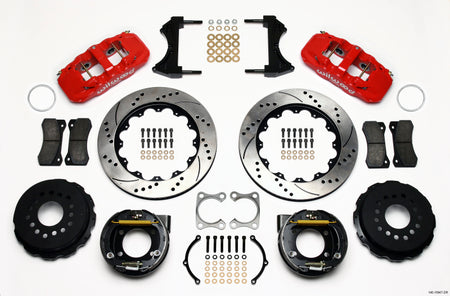 Wilwood AERO4 Rear P-Brake Kit 14.00in Drilled Red Big Ford Old Style 2.36in Offset