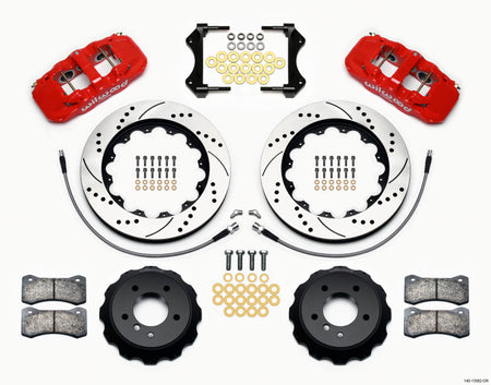 Wilwood AERO6 Front Hat Kit 14.00 Drilled Red 2007-2011 BMW E90 Series w/Lines